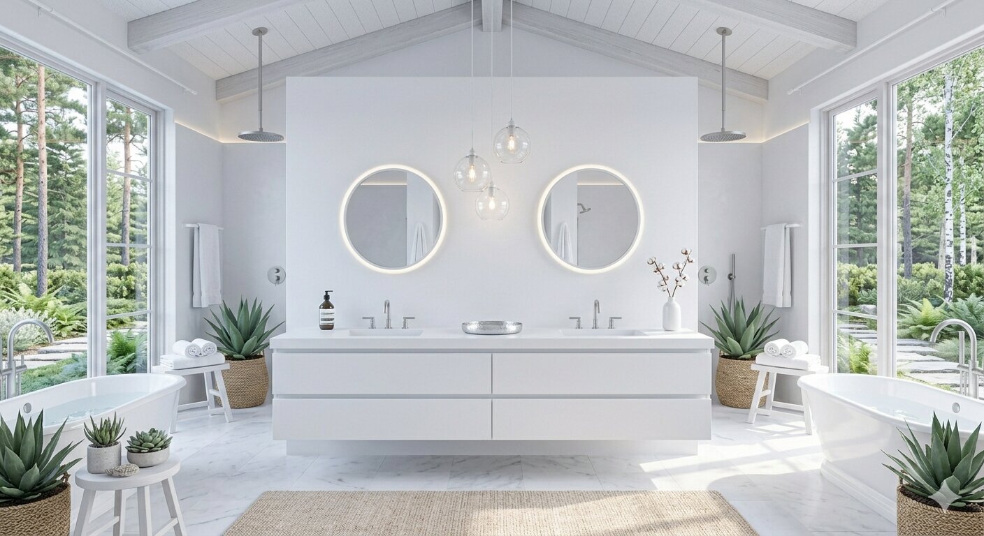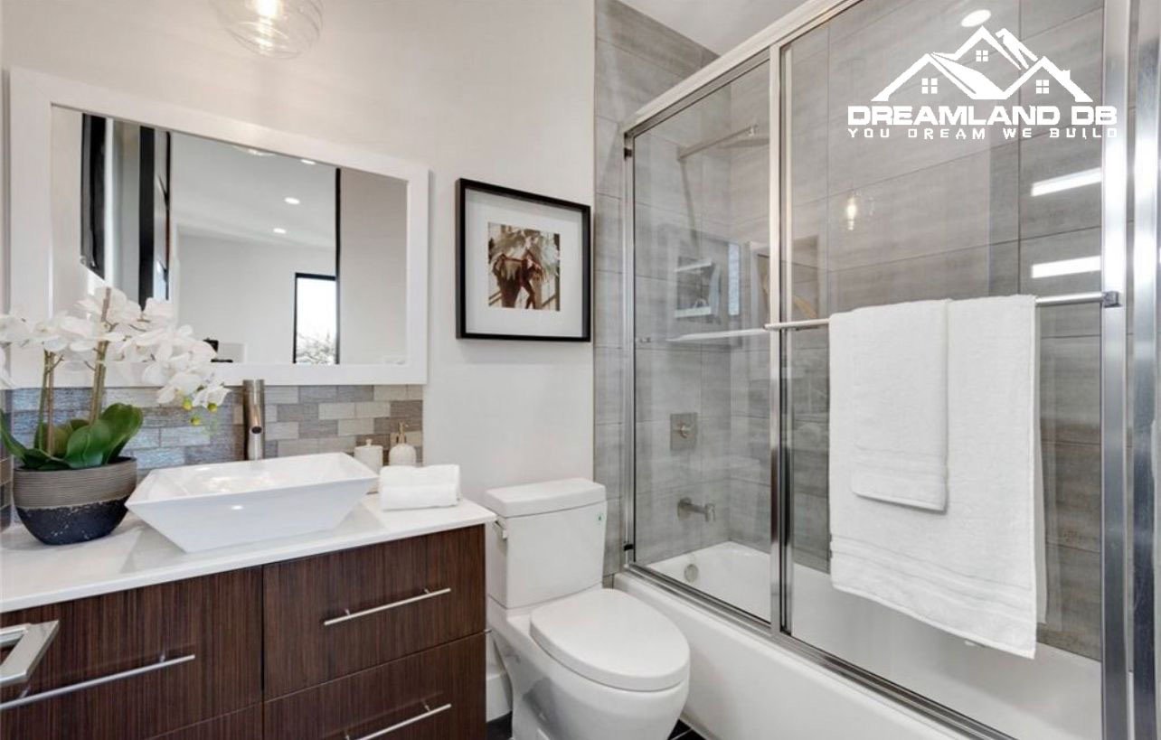 Walk-in showers, tub installations, and vanity upgrades are included. Tile work, waterproofing, and modern fixtures with lighting enhance both function and style.